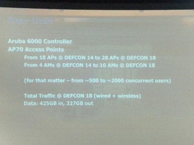 The next day the sessions began early. The first session began during breakfast, at 8am. It was given by the guys from Trustwave. They explained how they had successfully managed the DEFCON network during recent years: Building the DEFCON network, making a sandbox for 10,000 hackers.
