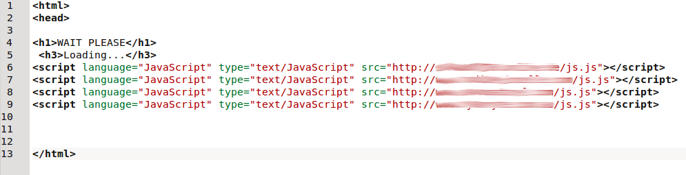 For a few seconds the victim sees a screen indicating that they must wait. Meanwhile 4 scripts, stored on different domains are loaded into user’s browser. They are little more than simple redirections towards the site where the code (that will attempt to perform the exploitation) resides.
