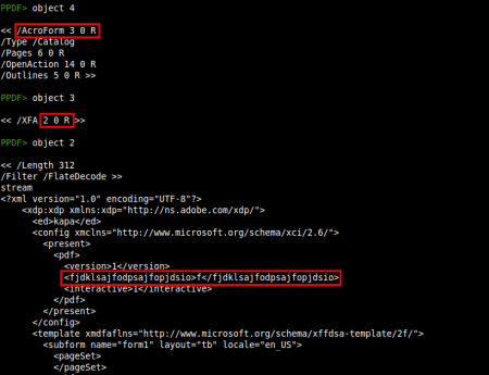 Después de analizar los objetos que nunca se ejecutarían, ahora podemos centrarnos en los que sí que serán procesados por los lectores PDF: