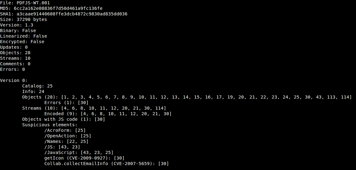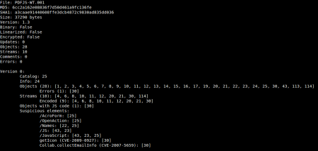 El pasado mes de noviembre, The Honeynet Project publicó un nuevo reto, esta vez sobre el análisis de un archivo PDF malicioso. Aunque es un poco antiguo ya, voy a analizarlo con peepdf porque creo que tiene algunas cosas interesantes y peepdf hace el análisis un poco más fácil. El archivo PDF se puede descargar desde aquí.